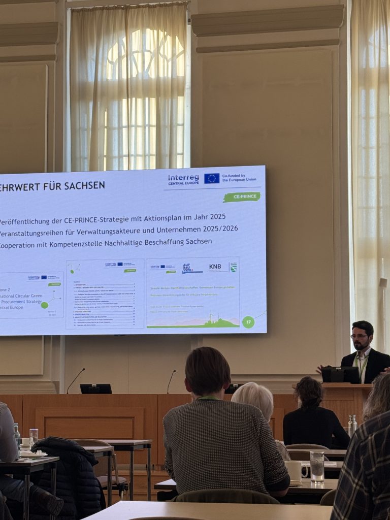 Als Referent vertrat unser Projektmanager Roman Hillebrand zum zweiten Mal das Aufbauwerk beim Nachhaltigkeitsgipfel und berichtete über den aktuellen Stand im Projekt CE-PRINCE. Anspruch des Projekts ist es, Kreislaufwirtschaft über das Vergabewesen in die Praxis zu bringen und in Mitteleuropa zu festigen. Er berichtete über die geschlossene Kooperation mit der Kompetenzstelle Nachhaltige Beschaffung, um eine Veranstaltungsreihe für öffentliche Verwaltungen und Unternehmen in Sachsen umzusetzen, die das Verständnis für und Kompetenzen im Umgang mit grünen und Kreislaufwirtschaftskriterien in Ausschreibungsverfahren stärken. Von Interesse waren auch die beiden Pilotaktionen im Projekt: zum Einen die Umsetzung einer Ausschreibung anhand von im Projekt erarbeiteten Idealkriterien, zum Anderen eine Nachhaltigkeitsberatung für KMUs in der Region, die beide in den kommenden Wochen anlaufen.